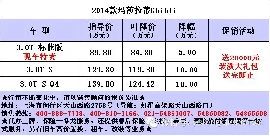 葉隆控股旗下分公司上海葉隆汽車貿(mào)易有限公司十一月熱銷車限量現(xiàn)車惠!保時(shí)捷macan、Panamera、卡宴、911、Cayman、Boxster;特斯拉;奔馳E級(jí)、S級(jí)、寶馬X1、X3、X5、X6、3系、4系、5系、6系、7系;捷豹XJ、XF、路虎極光、攬勝、攬運(yùn)、神行者2;瑪莎拉蒂總裁、Ghibli、GranTurismo;奧迪Q5、TT等均底價(jià)親民出擊,現(xiàn)場(chǎng)購(gòu)車再送價(jià)值2萬元裝潢大禮包、汽車養(yǎng)護(hù)維修抵用券!僅限10天哦!感興趣的歡迎撥打貴賓熱線:400-776-1030、400-888-7738