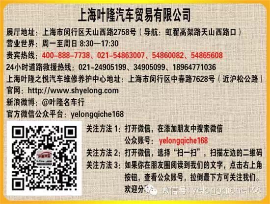 葉隆控股旗下分公司上海葉隆汽車貿(mào)易有限公司11月熱銷車限量現(xiàn)車惠!保時(shí)捷macan、Panamera、卡宴、911、Cayman、Boxster;特斯拉;奔馳E級(jí)、S級(jí)、寶馬X1、X3、X5、X6、3系、4系、5系、6系、7系;捷豹XJ、XF、路虎極光、攬勝、攬運(yùn)、神行者2;瑪莎拉蒂總裁、Ghibli、GranTurismo;奧迪Q5、TT等均底價(jià)親民出擊,現(xiàn)場購車再送價(jià)值2萬元裝潢大禮包、汽車養(yǎng)護(hù)維修抵用券!僅限10天哦!感興趣的歡迎撥打貴賓熱線:400-776-1030、400-888-7738